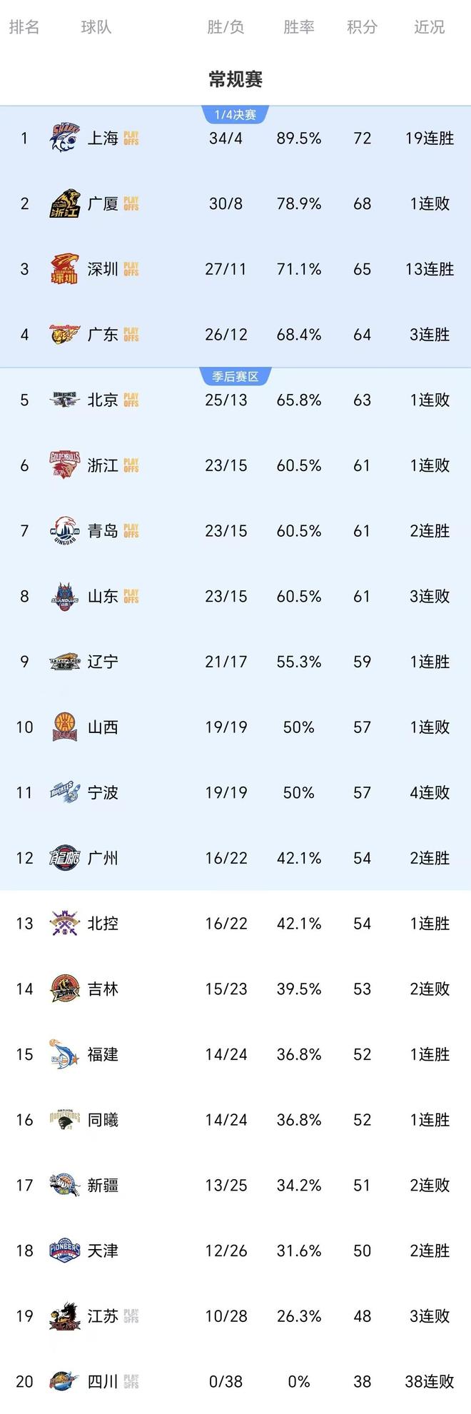 CBA一夜过后,季后赛12强基本出炉!广东+深圳+北京竞争直通八强